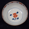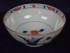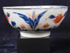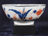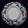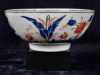 The porcelain bowl decorated in colours in underglaze-blue, iron-red and gilding with flowering plants in a park landscape with gates.