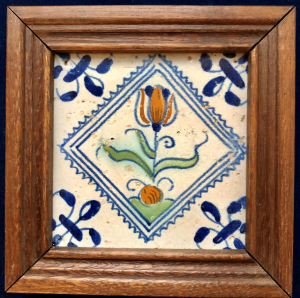 Original Antique Dutch Mid 17th Century Polychrome Delft Tile. Tulip in Diamond.