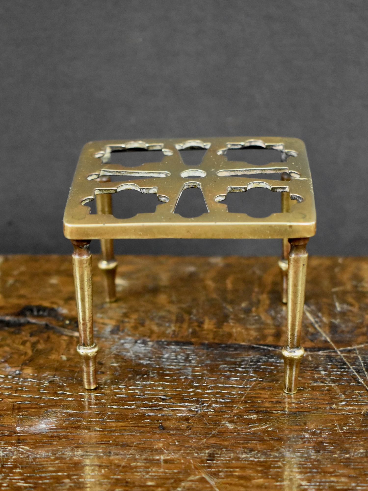 The square cast brass ajour worked out Toy Trivit on four tapering legs. Number 2290 marked on the bottom