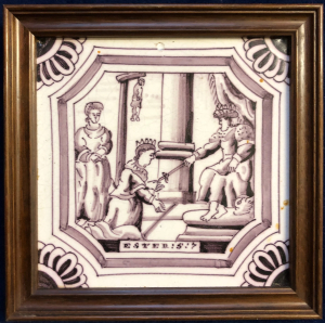 Original Antique Dutch 18th Century Delft Bible Tile. Esther 5