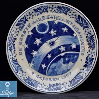 Sputnik. Blue & White Royal Delft Space Travel Plate - 4 October 1957