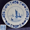 The tin glazed earthenware Breakfast Plate decorated in shades of blue within the center a Dutch brown sailing vessel in a Dutch landscape.