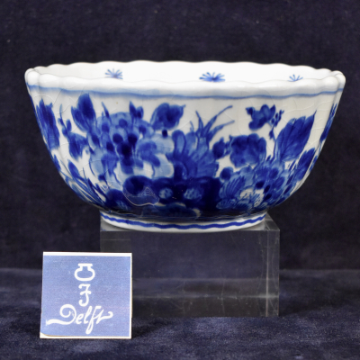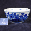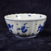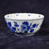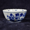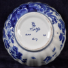 The small rimmed tin glazed earthenware bowl (Kastkom) decorated in shades of blue after the 17th century Kangxi tradition with flowering peonies on rockwork.