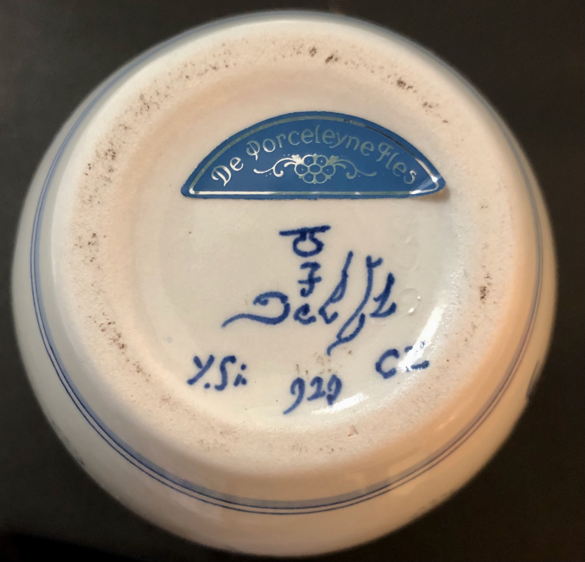 The ovoid body of the tin glazed earthenware jar decorated in shades of blue with stylized flowers. The cover decorated en suite.