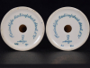 The two rare tin glazed earthenware candle holders on a round base decorated in shades of soft green with stylized flowers and leaves and 1868 - 1968. Finished with a matt milky glaze. Signed on the bottom in underglaze green for: