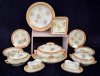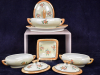 The porcelain set hand painted with field flowers and decorated with gold paint on the handle and rims.