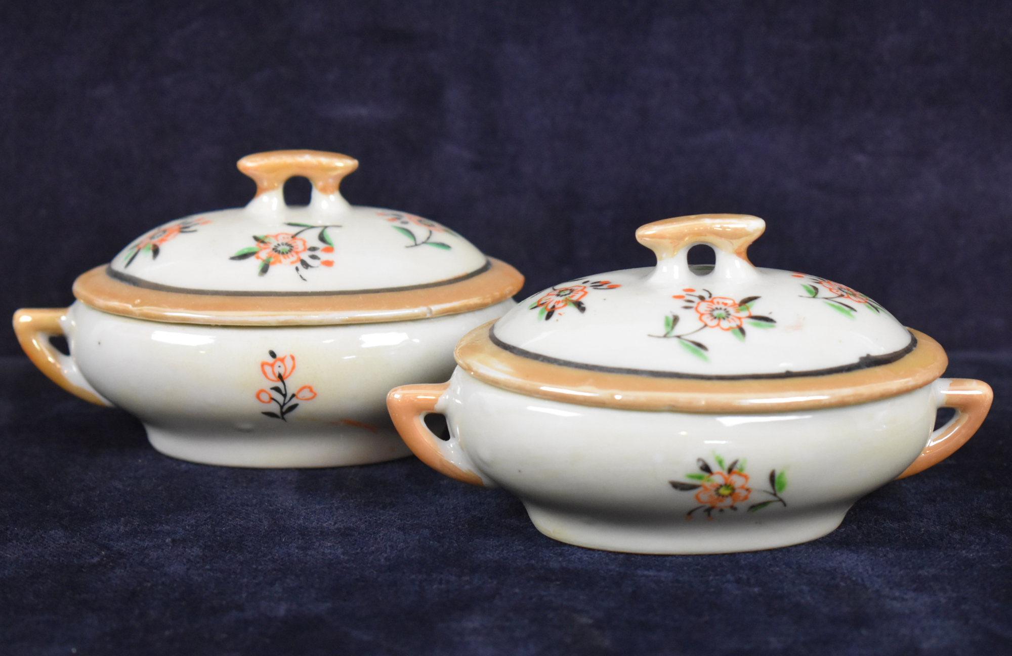 2 Terrines with lid Height: 5,5 cm. Width: 11 cm. 2,2 x 4,4 in. 2 =176 grams.