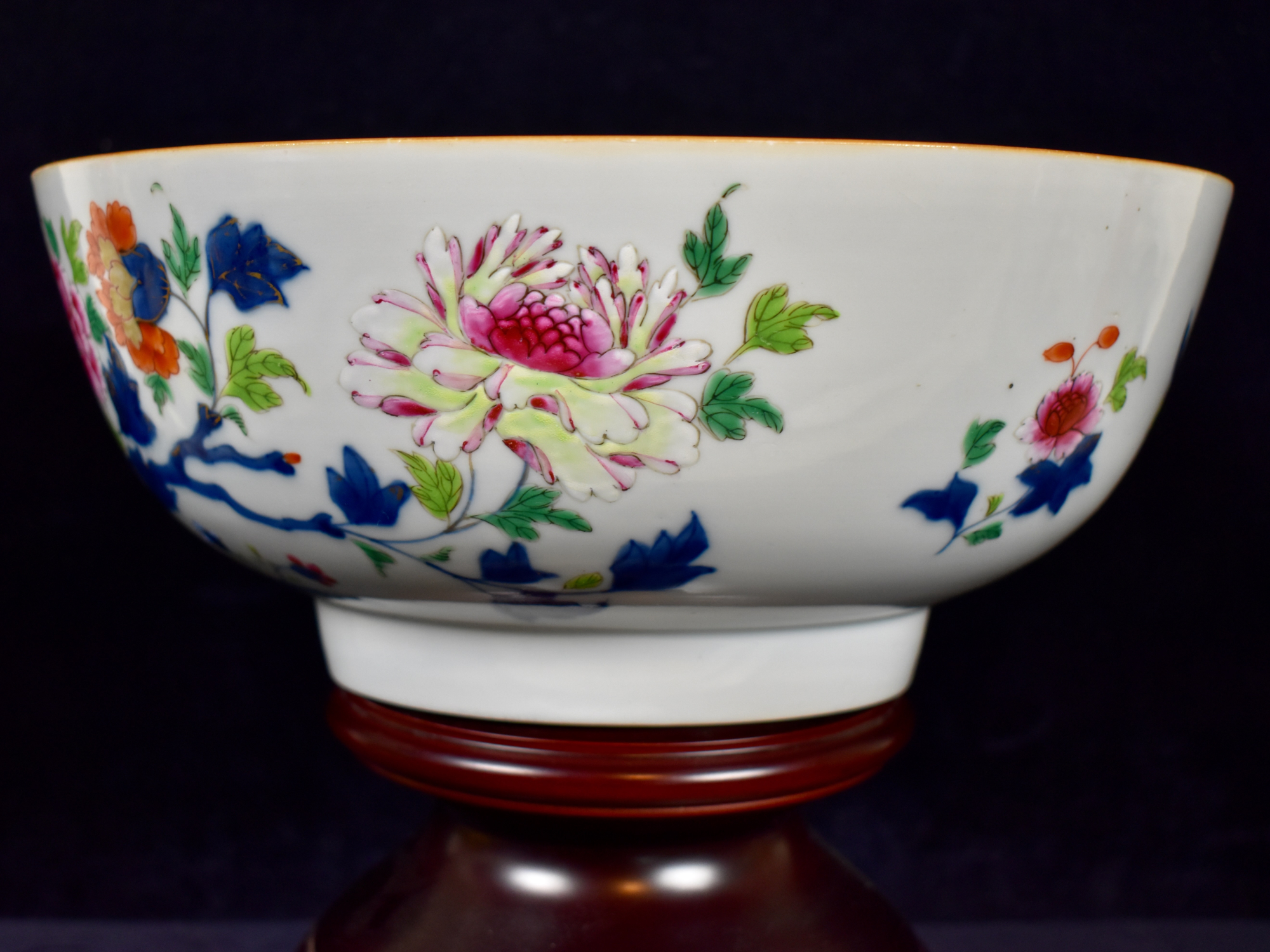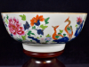 Gedecoreerd in het polychroom met bloeiende pioenrozen en rechts een zittende en staande vogel.