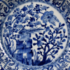 Impressive blue and white porcelain Kangxi charger comprising a finely painted central medallion with a perched pheasant on rockwork between flowering plants. The outer border consists of twelve panels, each holding depictions of flowering plants. A delicate geometric design frames the entire composition.