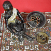 Franz Xaver Bergmann (1861–1936) was a renowned Austrian foundry owner celebrated for his cold-painted bronze figures, particularly those with Oriental, erotic, and animal themes. The figurine features a brazier, coffee pots, and goblets, illustrating the coffee preparation process.