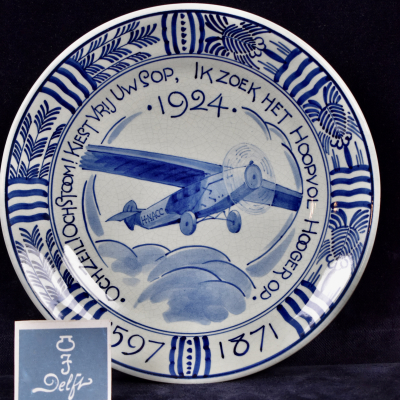 A larger plate is shown in Rick Erickson - Royal Delft Page 133 - Fig.11-25 ( but 22,5 cm ) Only 2000 plates were produced. Not shown in NL DELFTWARE - History of a national product De Porceleyne Fles. Page 162 – 163 with the KLM plates.
