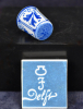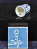 The tin glazed earthenware decorated in shades of blue with two panels with stylized leaves and one panel with the Royal Delft Signature with JT & Delft. On the inside in underglaze blue the painter initials.