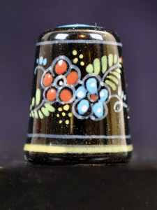 The round tin glazed earthenware chamberstick decorated in shades of blue with stylized flowers.