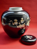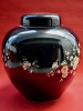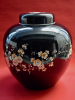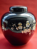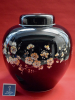 The tin glazed earthenware jar with ovoid body decorated in black, in the late 17th century “Famille Noir“ tradition, with flowering prunus